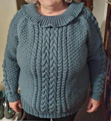The cables pattern in the middle of the jumper pattern, would be lost when increasing the size of the jumper, so I have redesigned the cables pattern to be more prominent in the larger/plus size jumper.