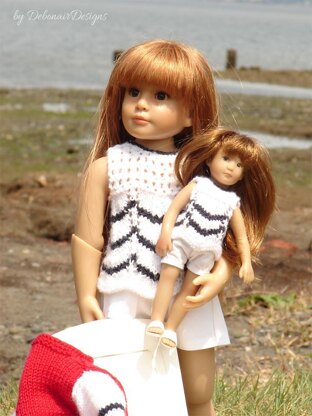 Nantucket ~ a jaunty pair of chevron stitched tunics a two in one pattern, for the 18inch Slim Kidz 'n' Cats dolls plus a Mini Kidz version