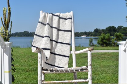 This crocheted baby blanket has a modern coastal vibe. Perfect for a nautical themed nursery. It's a classic blanket for a baby boy, but its timeless look is good for any gender!