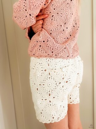 Create adorable and comfy granny square shorts with the Naomi crochet pattern! These delightful crochet shorts feature charming granny squares, finished with cute little back pockets for added functionality and style. Perfect for lounging at home, beach days, festivals, or casual outings, these shorts are both playful and trendy.