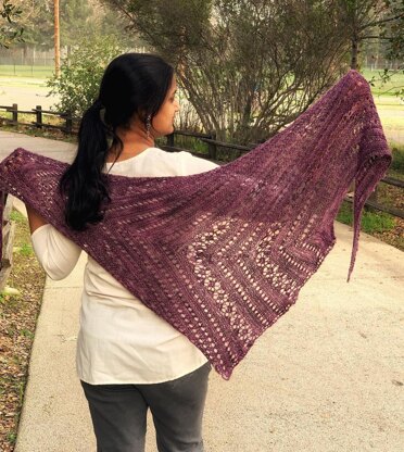 This type of construction is also known as the kite shape and is used in many popular shawl patterns. Almost all of them are designed to use generous amounts of yarn to feed this design. Here in Nasha, I have tried to work with 1 skein. :)