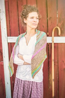 Nashville Shawl is a beautiful collared triangular shawl that incorporates several colors and sweet texture into its airy design. The small garter collar provides a romantic whimsical feel.