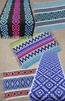 #418, Native American Placemats & Table Runners. 5 place mats with 5 matching table runners make colorful additions for your Native American Indian or Southwest inspired home decor. Designs are formed by cleverly placed dropped dc stitches worked in front loop of stitch 2 rows below. All color changes are done at the beginning of rows, so you are only working with one color at a time. Made using worsted weight yarn in your choice of cotton or acrylic. Includes written instructions as well as optional graphs. Approximate size for place mats is 13" x 18" with table runners ranging from 13" wide varying in adjustable lengths up to 72" with instructions on how to make even longer. Easy to intermediate skill.