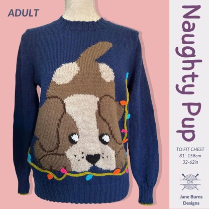 You asked for more adult sized designs, please meet the Naughty Pup Sweater. This size inclusive sweater is sized to fit chest from 81-158 cm 32/62 in.