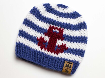 Anchor Hat Knitting Pattern Sailing Nautical Stripes Medium Worsted Weight Knit Winter Beanie Toque Baby Toddler Child Women Men Thin