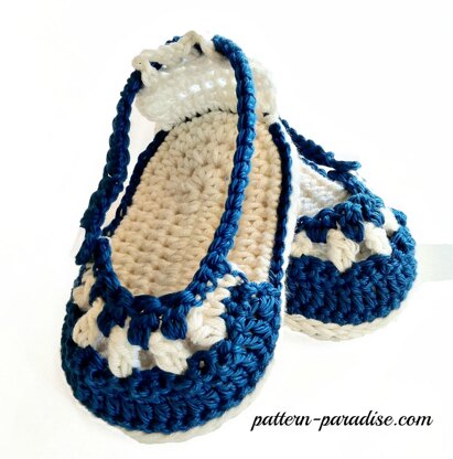This set has a nautical flare. The sandals have a two color bobble detail on top front, a strap back and close on the side front with a small button. The headband buttons for perfect fit and has rope detailing tied into a bow.