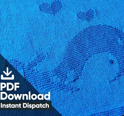 The pattern has a simple garter border to the edge, with mummy and baby whale surrounded by heart intarsia motifs that will be sure to make your nursery look complete.