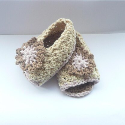 This is a quick and easy pattern to knit Neapolitan Baby Peeptoe Sandals. The inspiration for the name comes from the ice cream colours used in the pattern! The sandals have a simple textured pattern on the upper and a flower is then added to the instep, if desired. All you need is 25-50g of the 2 main colours and a small amount of a third colour for the sole trim and flower.