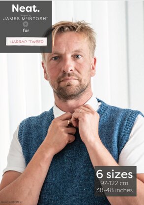 A round neck sleeveless vest / tank top designed by James McIntosh for Harrap Tweed DK.