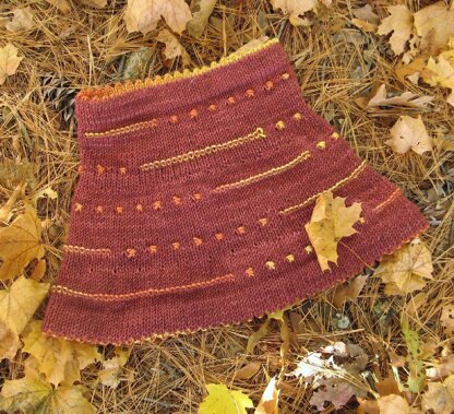 Colorful dots and lines call to mind Necco’s candy button strips, a favorite of my childhood. This design brings out the best in a high-contrast skein of hand-dyed yarn.