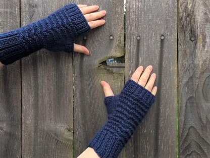 These mitts were created years ago when I was on a trip to the beach. With limited supplies and no real idea of how to write a pattern, I made these up on the fly. I finally found the time to sit down and write out instructions and a chart, and to specify different sizes and a full mitten version. With a textured pattern on the back of the hand and a garter rib cuff, these mitts are fun and fast to knit with enough variety to keep things interesting.