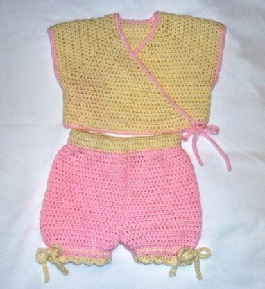 Neckdown Crocheted Baby Kimono Vest with Panties (or Shorts)