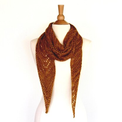 Inspired by the delicate yellow blossoms of the Golden Wattle. Nelia has elegantly tapered ends and is worked sideways with decreases forming a central spine. The airy lace chevron motif makes this the perfect project for warmer weather, and Nelia is stunning worked in silk or linen blends, but is equally lovely in merino.