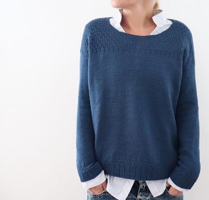 Neona is worked seamlessly from the top down. Knitting starts from a cast-on at the shoulders. Short rows are used to shape the shoulders, then both parts are joined to work the back down to the underarm. Stitches are then picked up at the shoulders to work the front. The work is then joined at the underarm and worked in the round to the hem. Sleeve stitches are picked up around each armhole and sleeves are worked from the top down in the round to the cuffs. An optional cowl neck can be worked last (or leave the neck raw as shown in the first image) - please note that you may need an extra skein for this.
