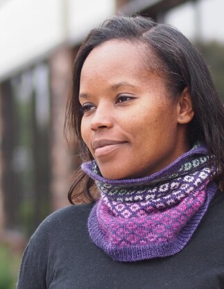 This cowl would make a great first stranded knitting project for a developing knitter. Each round is either a 2-2 or 4-4 repeat of the color pattern. What could be easier? Of course, it's so fun that knitters of all skill levels will enjoy it.