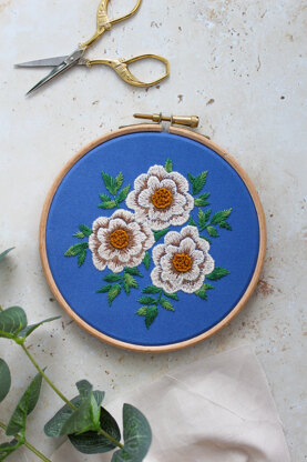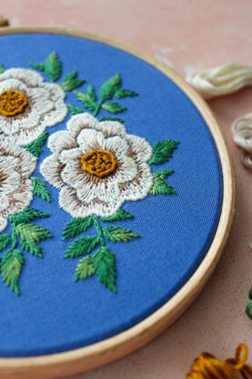 This stunning floral piece comes with 2 templates. The Main floral motif and a repeated pattern template. Using the same colour palette, it offers something to really get stuck into.\n\nGreat for winding down to some mindful crafting after a long day whilst adding a splash of modern embroidery to your home décor.\n\nMade up of only 4 stitches it’s the perfect beginner project.\nThe digital download is full of lots of top tips and how to’s to help you on your way if you are a complete beginner.\n\nComplete in a 12cm/ 5inch or the smaller 15cm/6inch embroidery hoop to display, or add the design to a tote bag, jacket, dress, or anything else you can think of make it that little bit more special. \n\nFor personal use only – Do not resell, distribute, or recreate this pattern in any way. You are not permitted to sell a finished embroidery piece in any format from this pattern – but you are allowed to gift it!\n\n