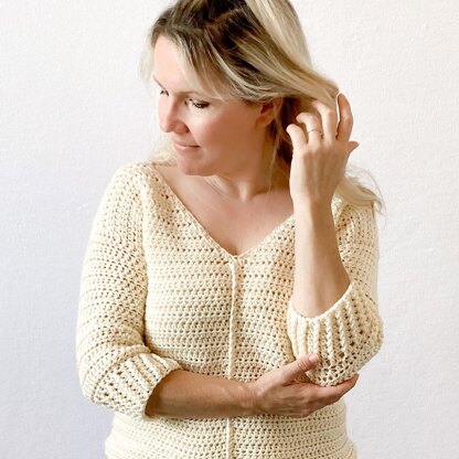 NOTES: Model is 5’3, wearing a Small. Worked bottom up.