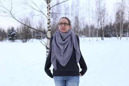Rich texture and smooth stockinette stitch – New Paths is a cozy shawl with a traditional triangle shape. Knit with DK weight yarn and blanket sized, it’s wonderful for keeping you warm.