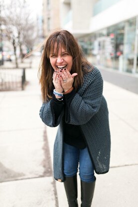This pattern works up super quick. The garment has positive ease and can be worn through transitional weather. I just love mine. Practically live in it.