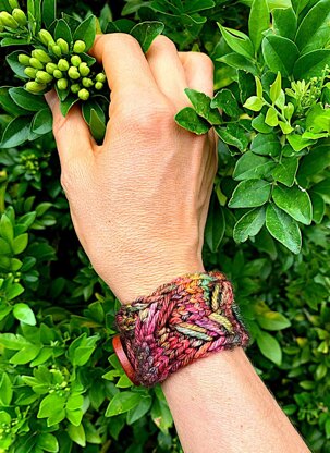 A fun, gratifying and super quick project that makes a great gift or project to take a break from complex knitting. This cuff is not only a great year-round knit to wear but it's also a fabulous introduction to cables. It may look complicated, but is actually very simple. A great confidence builder for beginner knitters, especially as all the cables are demonstrated in video tutorials (with or without a cable needle). Note that these cables are probably the easiest cables you'll ever do! Using such a small amount of yarn makes it great for all budgets and is great for using left over yarn from other projects! This knit is designed to make the most of highly variegated yarns, but will look great in almost any type of yarn.