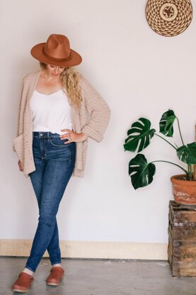 Cuffed sleeves, breezy drape and seamless construction make this the casual cardigan the easiest bang for your crochet buck!