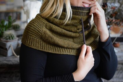 Ni is a shoulder wrap snood. Ideal for keeping your neck and shoulders warm at the same time ! Knitted top down, no seams, its double collar makes it an original piece and its cord allows you to tighten and adapt the diameter around your neck.