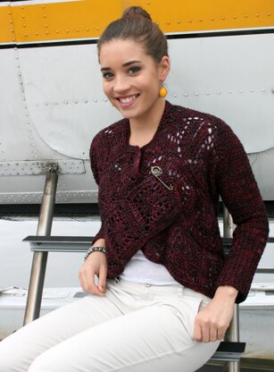 Named for Ruth Nichols, the founder of Relief Wings, which eventually became an ancillary relief service of the Civil Air Patrol during WWII, this cardi is motif work at its most sophisticated ... and easy! If you can make a rectangle and some squares, you can make this cardigan. Choose a light worsted weight yarn that will show off the wonderfully textured stitches and motifs; then get ready for the compliments.