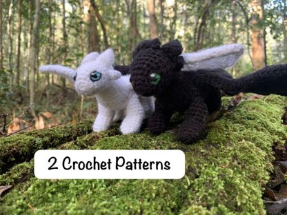 This is an amigurumi pattern that includes the instructions for creating two dragons: one for the Night F and one for the Light F. This is an intermediate to advanced pattern. While all steps are clearly explained, the design includes some advanced stitches and techniques that are essential to its completion, which could be challenging for less experienced crocheters.