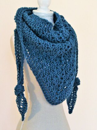 This shawl has a modern, urban feel with knotted ends and lots of texture. Great for wrapping up warm on a winter’s day or over your shoulders on a balmy summer’s evening.
