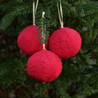 The baubles are knitted in the round (you can use double pointed or circular needles) and shaped with knitting increases and decreases.