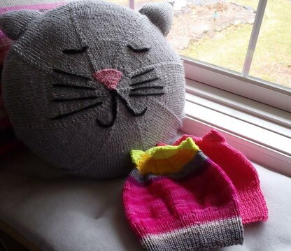 This hat is knit in the rounds. The brim is worked in 1 x 1 ribbing. The main body is worked in stockinette stitch. The stitches for the ears are picked up directly on the hat and knit in the rounds.