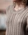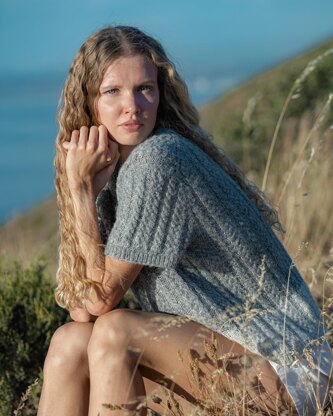 Nirvana is a loose-fitting top with all-over cables, featuring Japanese shoulder shaping. It is worked from the top down, starting with the back piece flat from neck to underarms. Left and right fronts are picked up from the shoulders and worked flat first separately until the bottom of neck opening, then as one piece until the underarms. At that point, extra stitches are cast on for underarms and the whole top is joined to work in the round all the way down to the hem. Neck opening is trimmed with a 1x1 rib neckband. Default pattern is written for short sleeves, but you can also choose to make them full-length, or work a 1x1 ribbed trim to turn it into a vest.