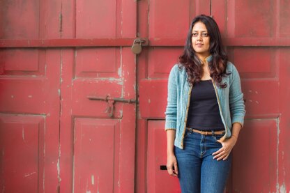 A simple cardigan with 0 to 2 inches of ease, worked from the bottom up. The hem, cuffs and collar are ribbed, with part of the ribbing worked in contrast yarn and sewn inwards for added detail (optional). I-cord button bands are also worked in contrast yarn.
