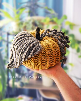 You'll first work the body of the pumpkin flat, then you'll join the two short edges together to form a tube. Easy-peasy! The leaf design will pique your interest with its clever short-row-like construction, and the tendrils and stem will bring a realistic touch.