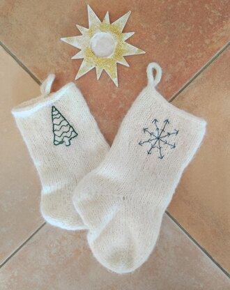 I propose you two embroidery designs in the pattern, but you can make your own, or you can keep the stocking plain. I have used a metallic embroidery thread.