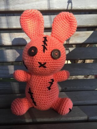 I love Halloween so I just had to create my own line of voodoo dolls for this time of year! You can use any weight yarn for this pattern. Just adjust your hook size. I used about 2/3 of a skein in Mango and just some scraps of the black.