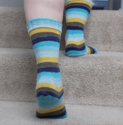 Most people will need roughly 100 g of fingering weight yarn to knit a pair of these socks; actual yarn usage will depend upon the size made and the length of the foot.