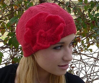 Noomi Hat is a sweet and simple little hat with a lace weight flower on the side. You can add Swarovski crystals or bead to the center.