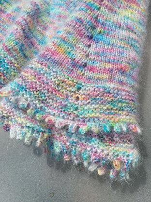 The Noordwijk Blanket is a one-sized blanket for everybody and can be made of any two lace yarns held together. It is knit in the round, starting with DPNs, but adding yarn overs it will grow fast. The border is just alternating purl and knit rows, ending with a picot edge, which might take a while, but is totally worth it. Feel free to add stripes or just use one color of both yarns, make it smaller or larger, as you wish. I used 3 skeins of maschenatelier's Balance and 6 skeins of Garnstudio's Drops Kid-Silk.
