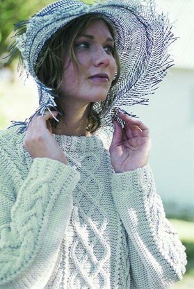 A Cable sweater with Garter rib bands and neckband. Suitable for an experienced cable knitter.