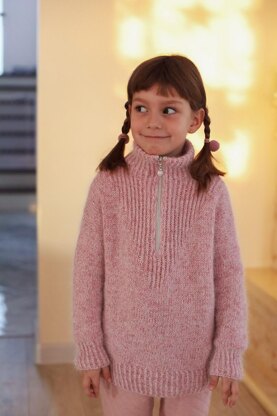 This sweateris designed to have approx. 17 - 19 cm 6.5 - 7.4 inches of positive ease. For example, if your kids measure 55 cm 21,5 in around the bust, you should knit a size 3-4 yrs. A size 3-4 yrs sweater has a chest circumference of 73 cm 28.5 inches which in the given example will give you 17 cm 6.5 inches of positive ease.