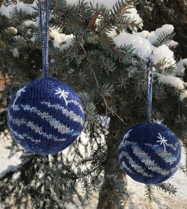 Be entranced by the northern lights! These pretty little baubles feature colorwork aurora borealis motifs and twinkling stars over a stockinette background. Evoking the constant dancing of the aurora, the pattern provides a selection of six motifs creating a set of similar but unique ornaments. Make one, make two, make an entire night sky!
