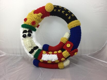 You will need the following to complete your wreath: Red Heart Super Saver: cherry red , royal blue, white and aran Bernat Super Value: black Loops and Threads impeccable: kelly green Vannas' Choice: mustard 12" styrofoam wreath Sherpa fabric: white (small amount) 4 mm crochet hook stitch marker tapestry needle polyester stuffing invisible thread and sewing needle (optional)