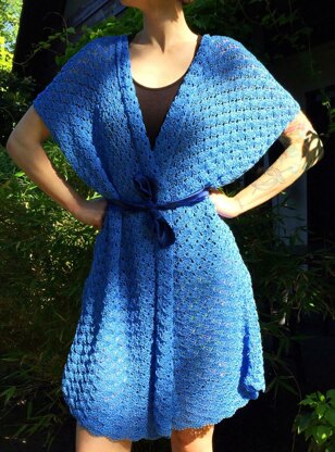 The Ocean Breeze Kimono is made from shell stitches, which are worked with 3 easy crochet stitches: chain stitch, single and double crochet. After two set up rows, you will work a repetition of only two basic rows. Those are easy to remember and make the pattern fun to work!