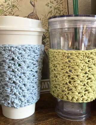 With just a few basic stitches and easy construction, you can have this textured cup cozy done in time to take along for your next outing! Great use for small amounts of cotton yarn, and an excellent quick gift idea.