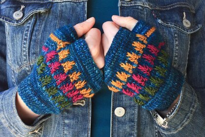 Odetta is a sassy, feisty lady. After growing up in the country, she lives a life in the city amongst loud crowds and tall buildings. She's found her people, those who accept and embrace her quirks with fondness. These mitts are in honor of her: edges softened with love and perfect for chasing chickens down city streets.