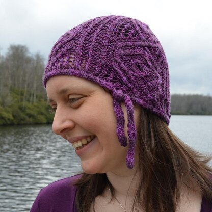 After falling in love with a stitch pattern used in an indie collection, the stitching addiction On the Set prompted an Off the Set spin off design. Exploring its possibilities led to some glamorous 1920s daydream knitting adventures in the form of a cute cloche. The journey begins with a highly textured I-cord cast on. Stitches are picked up for the body of the hat. Cables and lace merge to take this adventure Off the Set into daily living style.