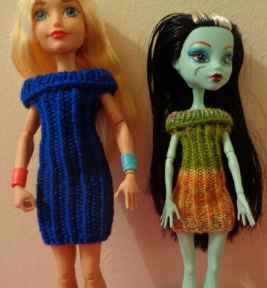 Using 3mm needles with DK yarn this will fit the DC Superhero Girls Dolls. Using 2.5mm and sock yarn this will fit Monster High.
