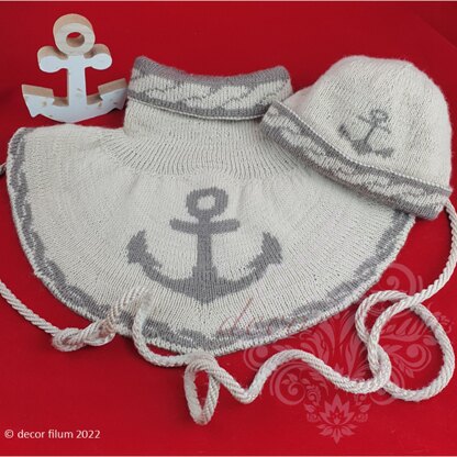 Instructions for pretty reversible doubleknit cowl & hat with Anchor and rope motives that offers lots of varieties and won’t only keep you warm and cosy when sailing or taking a walk on the beach.