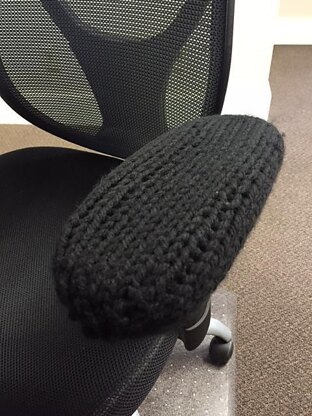 When you have a tear in your office chair, or want some extra fluff for your arm, but you don't want to get it reupholstered, you can make a quick and easy cover! This can be customized in length. Uses size 13US double pointed needles You need a 1/2 skein of chunky yarn for making two covers.